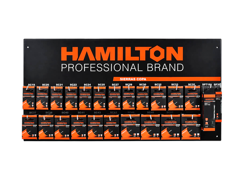 Tablero porta-herramientas: Fabricado en chapa de acero de 1,2 mm. – Recubrimiento con pintura epoxi. – Medidas: 0,70 m x 0,23 m.
